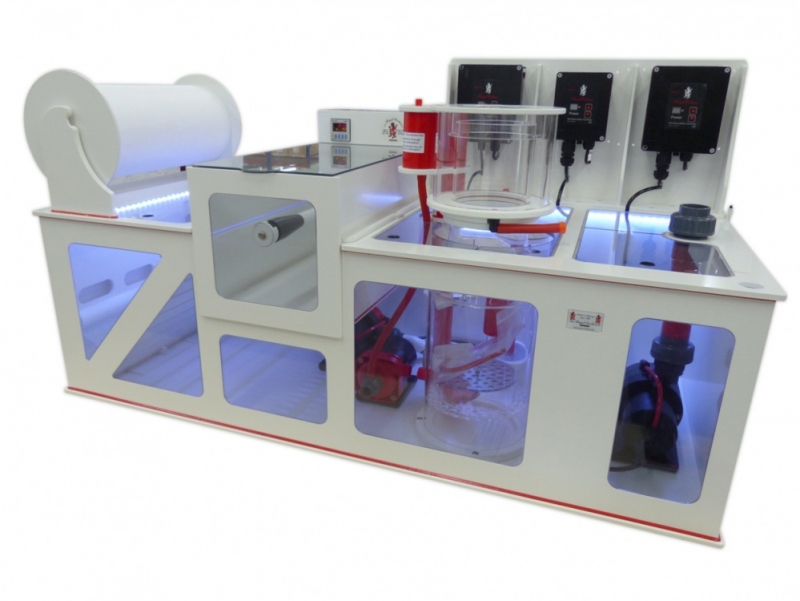 Fully automatic Vlies (Fleece) roll filter for fresh and saltwater aquariums. The Vlies (Fleece) of Dreambox® 3.0 is made of 8 mm Simona-PVC slides (food safe), fixed from the inside and from the outside and finished with a hot gas welded seam by hand. Equipped with an integrated fleece roll filter, cover completely closed and control unit (Panasonic panel, sensor, drive motor).